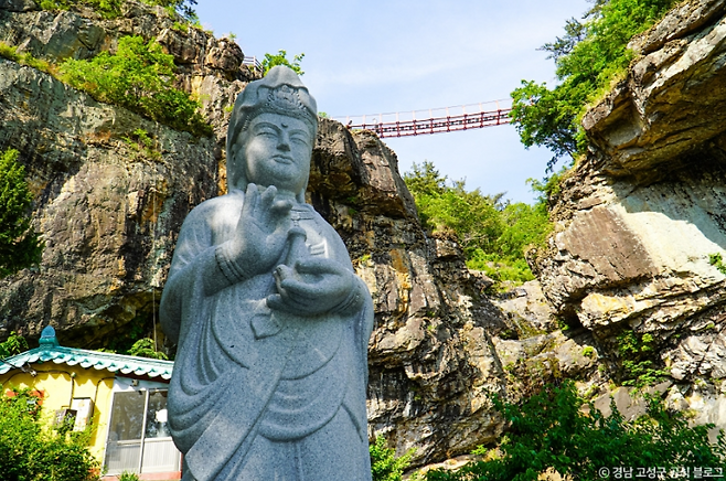 폭포 위로 걸쳐진 다리에서 내려다보는 풍경은 고성 비경의 절정.