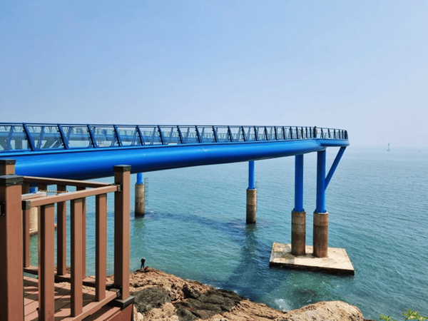 해운대에 위치한 다릿돌전망대는 바다 위로 길게 뻗은 유리 데크가 인상적인 장소인데요. 투명한 바닥 아래로 펼쳐지는 파도와 암초의 풍경은 마치 공중에 떠 있는 듯한 기분을 줍니다.