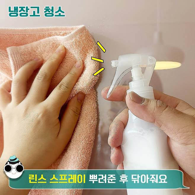 냉장고 표면 청소도 린스 스프레이를 활용하면 훨씬 매끈하게 관리가 가능하답니다. 뿌려주고 닦아주면 끝!