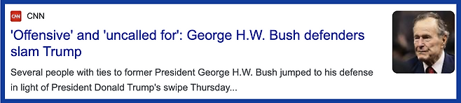 위 기사는 트럼프 전 대통령이 조지 부시(아버지 부시) 전 대통령을 느닷없이 비난한 데 대해 그와 함께 일하던 사람들이 트럼프를 비난했다는 내용을 담고 있어. 갑자기 그를 비난한만큼 uncalled for이 ‘지나치다’라는 의미로 사용됐지!