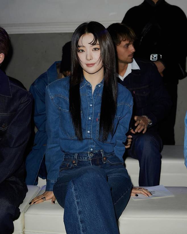 슬기는 셔츠와 팬츠 모두 데님 소재로 구성된 올 데님 룩을 선택해 통일감 있는 스타일링을 선보였다. 톤온톤으로 매치된 데님 아이템은 심플하면서도 세련된 분위기를 자아내며, 액세서리 없이도 충분히 완성도 높은 룩을 보여준다. 포멀한 자리에서도 활용 가능한 감각적인 코디다.