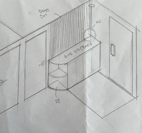 그때 그때 생각나는 것들은 이렇게 손으로 그려서 인테리어 매니저님께 보내드리고 의견을 나누었습니다.