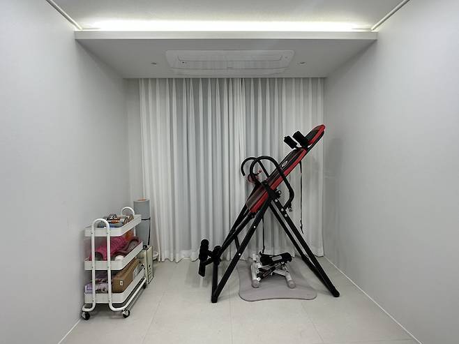 서재는 방이 넓지 않아 오피스용 책상은 작은 걸로 구매하고 운동기구만 놓았어요! 해외 직구로 구매한 오피스 체어는 보시는 분들마다 너무 고급지다며 탐내고 계세요ㅎㅎ!
