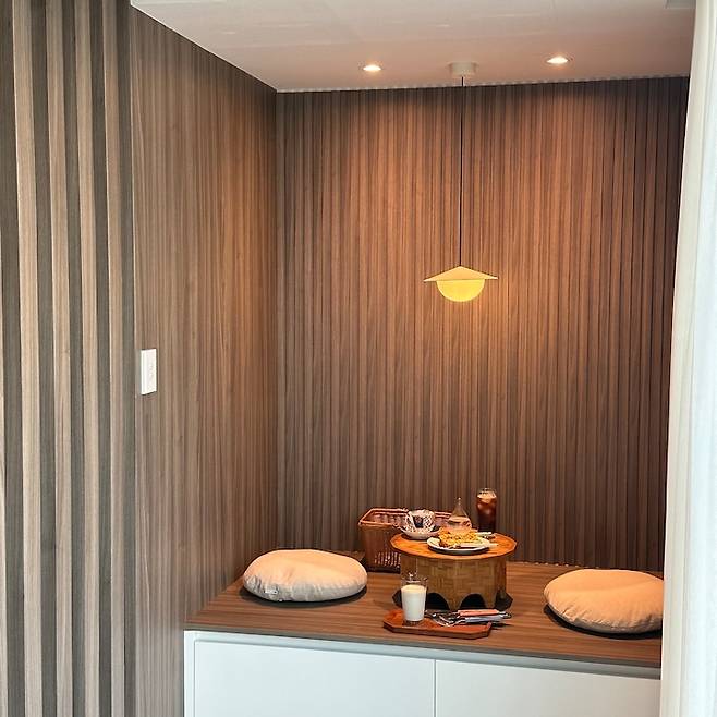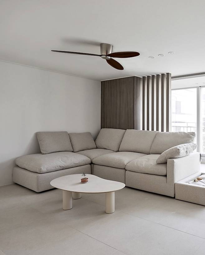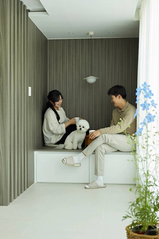 건설업의 특성상 새벽 출근을 하기 때문에 퇴근 후나 주말에는 집에서 푹 쉬는 게 제일 중요하다고 생각되어 집밖에 나가지 않아도 커피 한잔 마시러 나온 편안한 카페 같은 공간을 만들고 싶었어요.