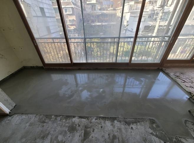 철거 및 확장공사는 두 곳을 진행했어요! 먼저 거실 베란다는 외부창호를 이중창으로 교체 시공할 예정이었기 때문에 벽 단열과 바닥 난방공사를 했습니다!
