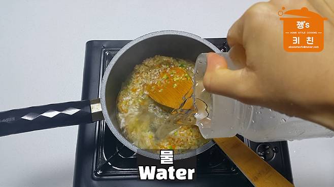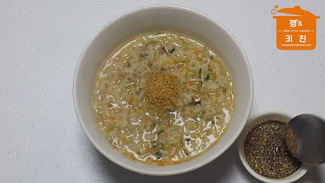 불린 쌀, 참기름, 양파, 당근, 애호박,