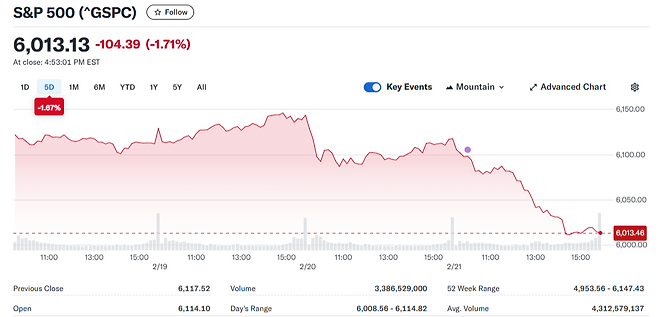 캐나다 멕시코에 대한 관세 적용은 3월 1일까지 유보하고 다른 나라에 대한 상호관세도 4월 1일이 기한입니다. 당분간 미국 증시는 관세 우려로 인한 인플레 우려로 소비자들의 소비 위축 및 관세 전쟁 여파에 대한 변수로 횡보하거나 급락은 아니더라도 추가 조정이 나올 수 있습니다.