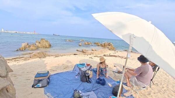 믾은 관광객이 찾으며 해변을 따라 카페와 맛집이 생겨나 불편함도 없습니다. 영진해변은 7월과 8월 개장 전부터 차박이나 그늘막 등 간단한 피크닉을 즐기는 여행객들을 쉽게 볼 수 있는데요. 그만큼 여유를 즐기기에 적합한 해변입니다.