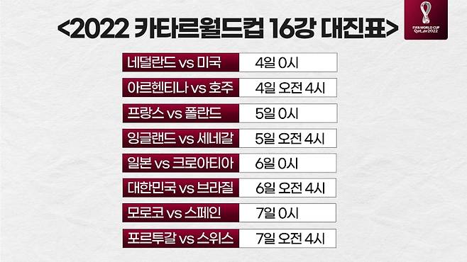 - [월드컵]16강 대진표..한국vs 브라질, 일본vs 크로아티아