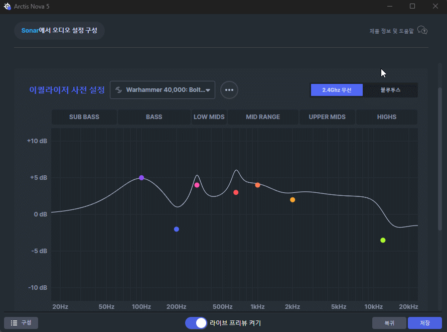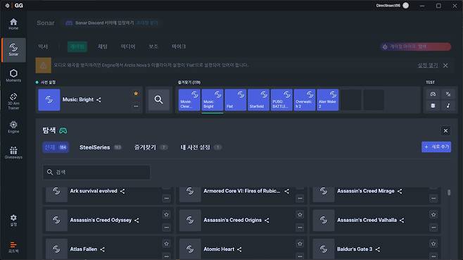 그리고 기본적으로 100개 이상의 게임과 음악 및 영화 모드 프리셋 EQ 설정이 세팅이 되어있어서 일일이 설정하지 않아도 빠르게 다양한 모드로 변경하며 사용할 수 있습니다. 또 즐겨찾기를 통해서 자주 플레이 하는 게임이나 음악 및 영화 프리셋을 즐겨찾기로 등록해서 클릭 한번으로 변경할 수 있다는 점이 좋습니다.