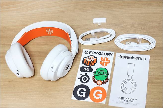 포장은 위와 같은 모습이며 본체와 함께 연장 USB-C 수신단자 케이블 및 충전 케이블이 함께 들어있습니다. 그리고 튜닝용 스티커와 메뉴얼도 확인이 가능합니다. 국내 정품일 경우 정품 인증 스티커를 확인할 수 있습니다.