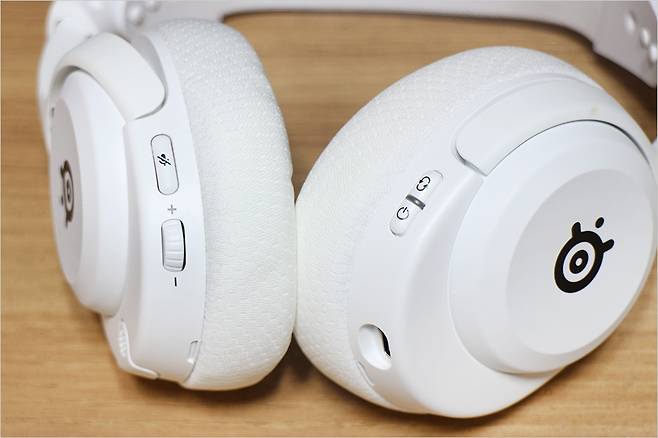기능 동작 버튼들은 직관적입니다. 볼륨은 휠 방식으로 마이크 ON/OFF, 2.4Ghz 초고속 연결(녹색) 및 블루투스 전환(블루)은 버튼 터치 한번으로 가능합니다. 버튼 배치가 특정 제품처럼 드라이버 전면에 있는게 아니라 모두 측면에 위치하고 있기 때문에 조작 버튼들을 손가락으로 찾기 쉽고 조작이 수월합니다.