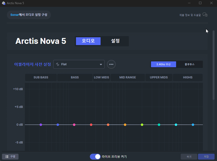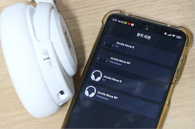 그리고 모바일에는 블루투스 연결이 가능한데 전용 앱을 설치하면 PC 및 블루투스 설정을 실시간으로 할 수 있습니다. 블루투스 전환 버튼 한번으로 페어링이 무척 쉽습니다. 스틸시리즈 아크티스 노바5 화이트의 단점이라면 오염에 취약하는 것인데요. 외부 러버느낌의 외관은 괜찮지만 직물형 이어패드가 오염에 가뜩이나 취약한데, 화이트 색이라 이물질이 더 티가 잘난다는 단점이 있습니다. 디자인적으로는 깔맞춤 하기 좋은 선택이나 굳이 오염 티나는걸 방지하고자 한다면 블랙 모델을 선택하는 것도 좋은 방법이지 않을까 생각됩니다. 전체적으로 가격대비 밸런스를 상당히 잘 갖춘 무선 게이밍 헤드셋이라 평가하고 싶습니다. 안정적인 성능과 초경량 무게, 다양한 프리셋과의 궁합 및 뛰어난 사운드 및 콘솔 지원이 장점인 제품이라 생각됩니다.