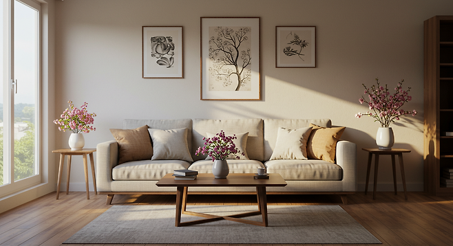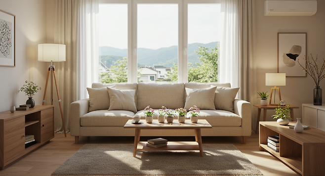 공간의 ‘균형’은 풍수에서 매우 중요한 요소입니다. 바닥 매트를 보완하거나, 시선이 위로 향하도록 하는 그림이나 조명을 활용해 시각적 균형을 맞추는 것이 도움이 됩니다.