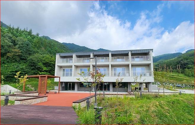 산림휴양관 (연립형): 관리사무소 인근에 위치한 아파트형 숙소입니다. 복도식 구조로 되어 있으며, 내부는 복층 형태(1층 거실/주방, 2층 침실)로 설계되어 공간 활용도가 높습니다. 특히 테라스가 넓어 새벽녘 모닝커피와 함께 동이 트는 백두대간의 능선을 감상하기에 최적입니다.
