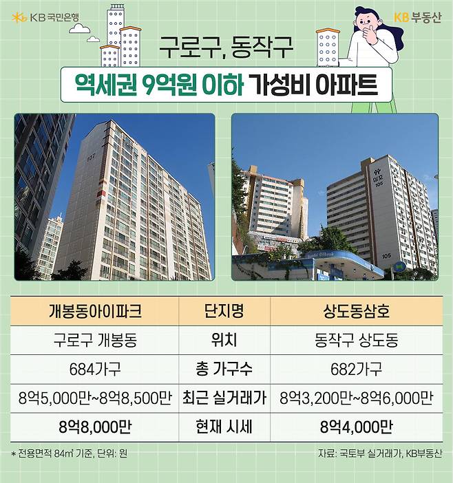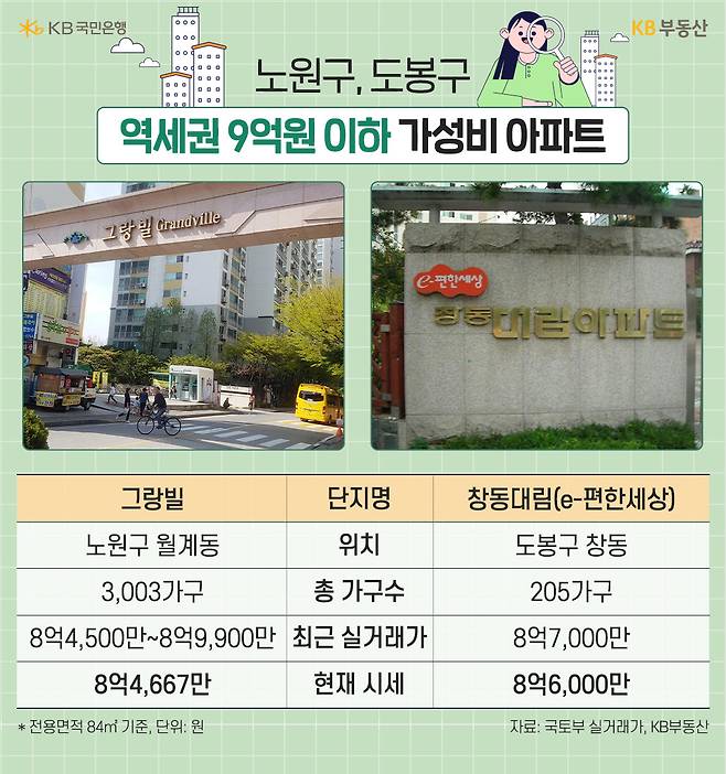 전국 아파트 매매가격지수가 두 달 연속 하락했습니다. 서울도 상승폭이 줄고 외곽지역인 노도강, 성북구와 중랑구는 하락하는 등 강보합세를 보이고 있는데요. 이런 분위기가 오히려 내 집 마련의 기회가 될 수 있을지 궁금해 하는 분이 많을 것이라 생각됩니다. 그래서 KB부동산이 올 1월부터 3월 현재까지 서울 역세권에 위치한 전용면적 84㎡, 8억~9억원 사이에 거래된 실거래 사례를 모아봤습니다.