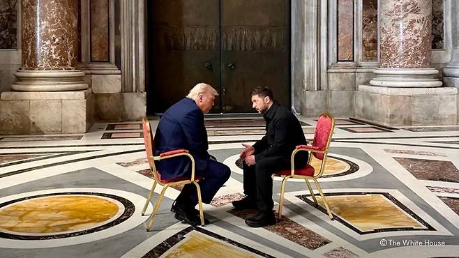 프란치스코 교황의 장례 미사가 열렸던 지난 26일(현지시간) 바티칸 성베드로 대성당에서 도널드 트럼프 미국 대통령과 볼로디미르 젤렌스키 우크라이나 대통령이 은밀히 만났어요. 두 사람은 보좌진도 없이 15분간 마주 앉아 우크라이나 휴전에 대해 얘기했다고 하는데요. 양측 모두 “만족스러웠어!”라는 반응이 나왔다고.