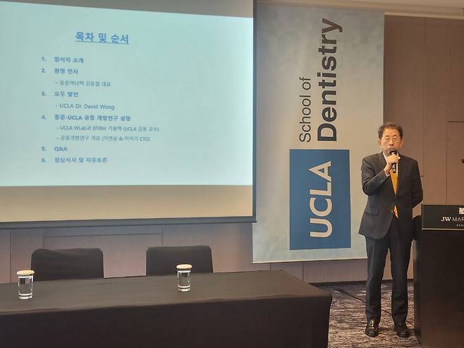 공동개발에 나서는 데이비드 웡(David T.W. Wong) UCLA 치의과대학 박사는 20년 이상 액체 생검(Liquid Biopsy) 관련 연구를 진행한 전문가다. 그는 구강과 두경부 종양학 연구센터(COOR) 소장 겸 교수이며 본인의 이름을 따서 만든 연구소 ‘W랩’의 책임자다. W랩은 자체 개발한 ‘이펌(EFIRM Technology)’ 기술을 통해 타액으로 암을 진단하는 연구를 진행 중이다.