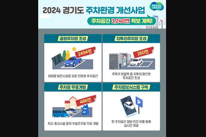 경기도나 서울 외곽지역의 경우 그나마 서울보다 밀도가 높지 않아 주차장을 조금 넓게 만들어 놓았다. 경기도는 올해 주차 환경 개선 사업을 통해 공영주차장을 추가로 조성하고, 무료 개방 부설 주차장을 운영하는 등 주차 문제 해결에 힘을 쓰고 있는 것으로 전해졌다.
