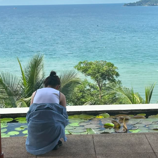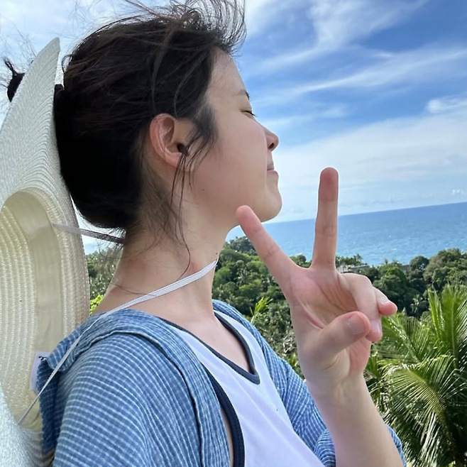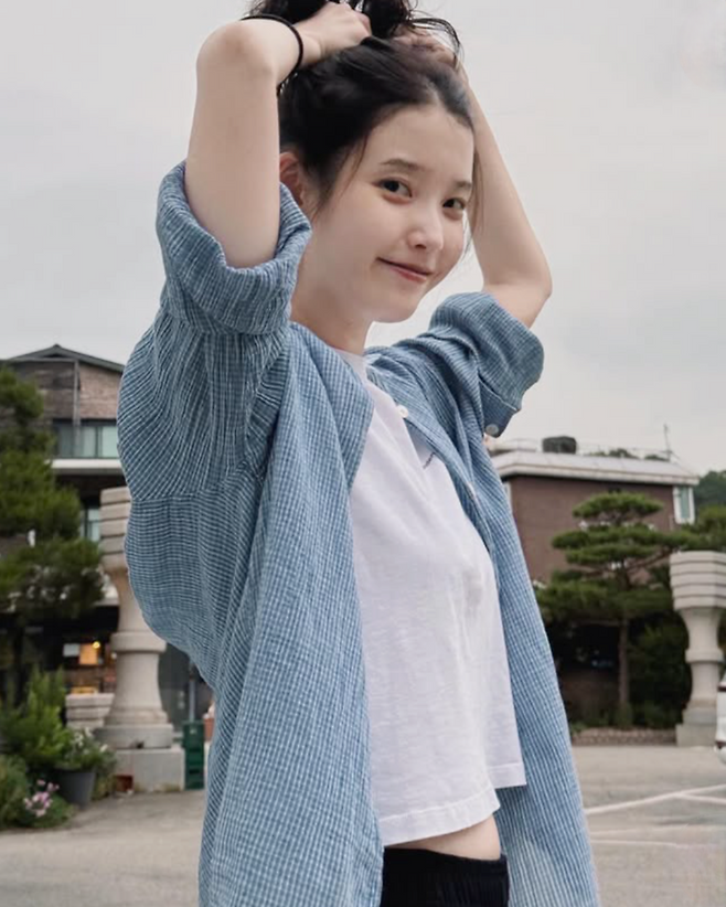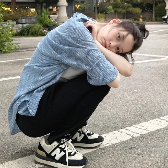최근 SNS에 올라온 사진 속 그녀는 검정 바지와 운동화, 헐렁한 셔츠 하나로 여름날을 즐기고 있었다. 가볍게 질끈 묶은 머리, 쿨톤이 감도는 푸른 체크 셔츠, 그리고 환한 민낯. 이 모든 것이 오히려 꾸미지 않은 고급스러움처럼 느껴진다.