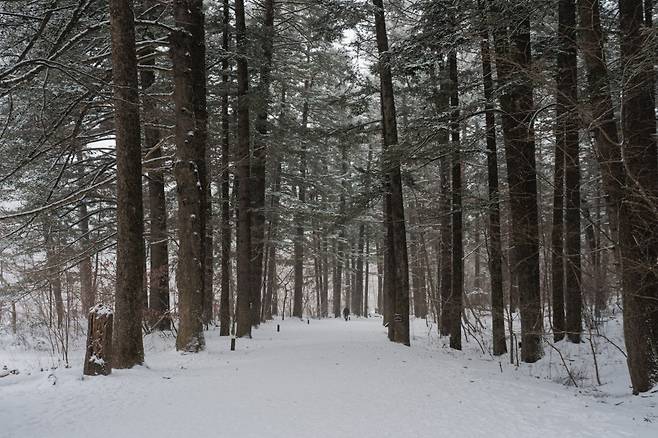 눈 내린 숲길을 천천히 걷고 싶은 분