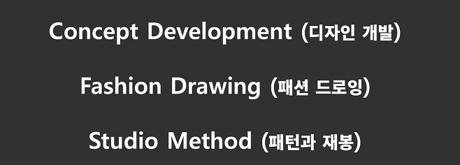 패션 디자이너에게는 크게 3가지 능력이 필요합니다. 그중 첫 번째인 '디자인 개발' 능력은 사람마다 영감을 얻고 풀어내는 과정도 다르기 때문에 정해진 답을 알려 드릴 수는 없습니다. 그 답은 스스로 찾아갈 수밖에 없습니다.