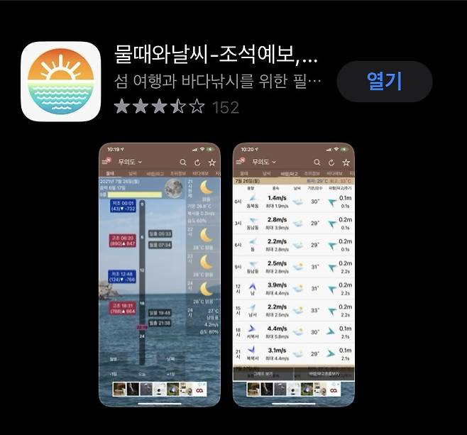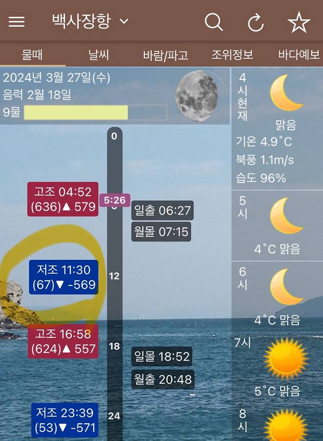먼저, 스마트폰에서 "물때와날씨"라는