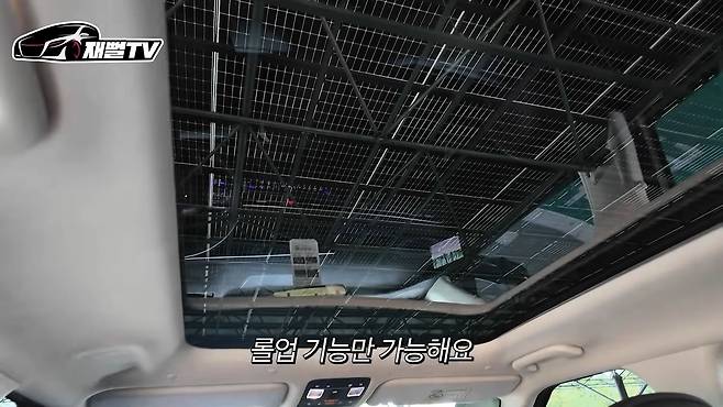 이 천장에는 롤업 기능만 가능한 루프 블라인드가 있어 채광을 조절할 수 있습니다. 테슬라처럼 루프 블라인드가 없어 뜨거워지는 문제를 방지하는 데 효과적이었습니다.