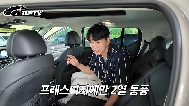 2열 리클라이닝은 37도까지 가능하지만, 수동으로 조절해야 하며, 8,800만 원짜리 차라는 점을 고려하면 고급화가 아쉽다고 지적합니다. 2열 통풍 시트는 프레스티지 트림에 와야 적용되는 점도 참고해 주십시오.