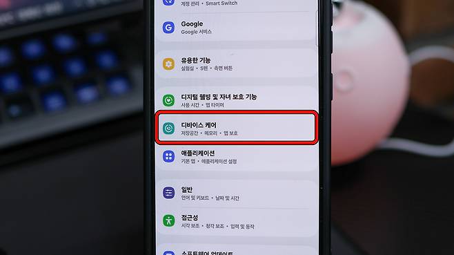 2). 디바이스 케어 선택: 설정 메뉴에서 '디바이스 케어' 항목을 찾아 선택한다.