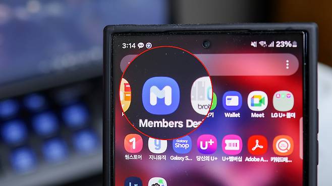 1). 삼성 멤버스 앱 실행: 갤럭시 스마트폰에서 삼성 멤버스 앱을 실행한다.