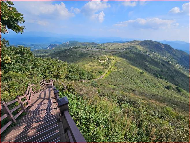 무엇보다 황매산은 차로 90% 가까이 오를 수 있어 무더운 여름에도 짧고 가볍게 다녀오기 좋은 산이예요. 드넓은 초원, 탁 트인 능선, 그리고 여름 햇살 아래 자라고 있는 초록 억새들. 지금의 황매산은, 곧 다가올 가을의 절정을 기대하게 만드는 ‘프리뷰 무대’랍니다.