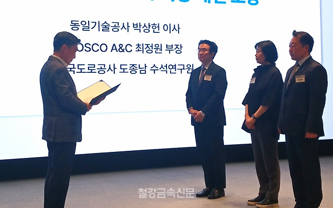 특히, 수상자 중 한국도로공사 도종남 수석연구원은 지난 10월 고속도로 건설재료 품질기준 제23차 개정 당시 ‘스테인레스’를 국가표준규격에 맞춰 ‘스테인리스’로 수정하고 STS304와 같이 KS인증 강종을 명확히 명시하는 등 자칫 불분명한 표기법이 비규격재 사용으로 이어지지 않도록 한 공로를 인정받았다.