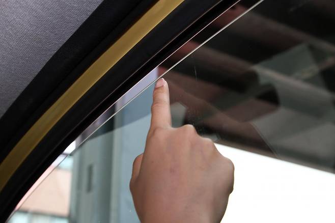 조수석 창문만 아주 조금 열기 (~2cm)