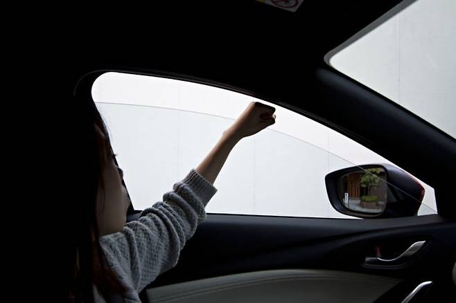 조수석 창문을 약간 열어두고