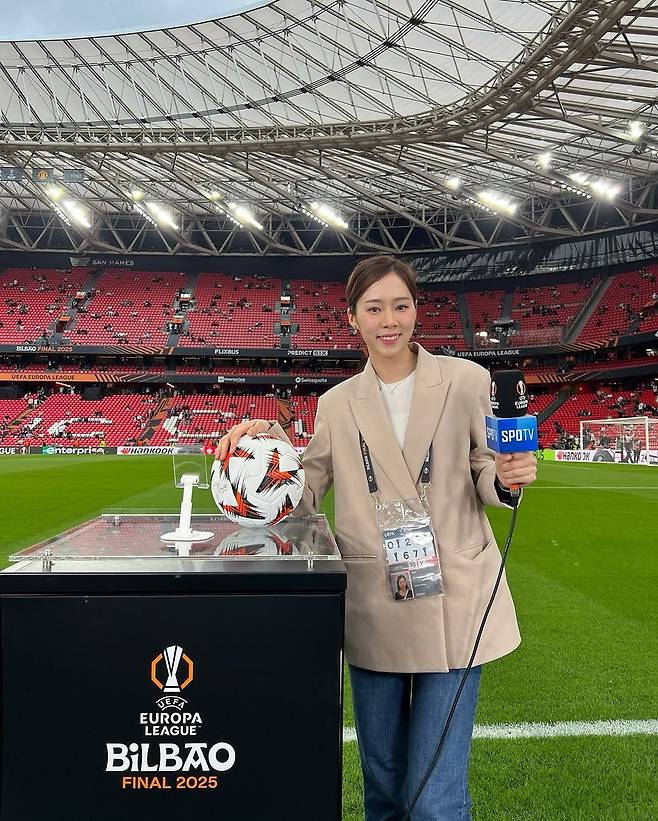 스페인 빌바오, UEFA 유로파리그 파이널이 열리는 ‘산 마메스’ 스타디움 한가운데, 중계 마이크를 손에 든 노윤주 아나운서의 세련된 테일러드 재킷 스타일이 시선을 끈다. 유럽 축구팬들의 이목이 쏠린 이 빅 매치 현장에서, 그는 단정하면서도 도시적인 무드를 담은 스타일링으로 단박에 존재감을 드러냈다.