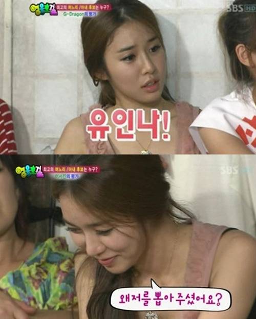 바로 배우 유인나였습니다. 방송된 SBS '일요일이 좋다' 코너 '영웅호걸'에서 빅뱅 뱅뱅뱅 지드래곤이 목소리로 깜짝 출연해 결혼하고 싶은 여자를 공개한 바 있습니다. 유인나와 친분이 있는 지드래곤은 유인나를 통해 '영웅호걸'에 전화연결로 출연했습니다. 바로 '영웅호걸' 멤버 중 한 명과 결혼해야 한다면 누구와 할지 결정하기 위해서였습니다.