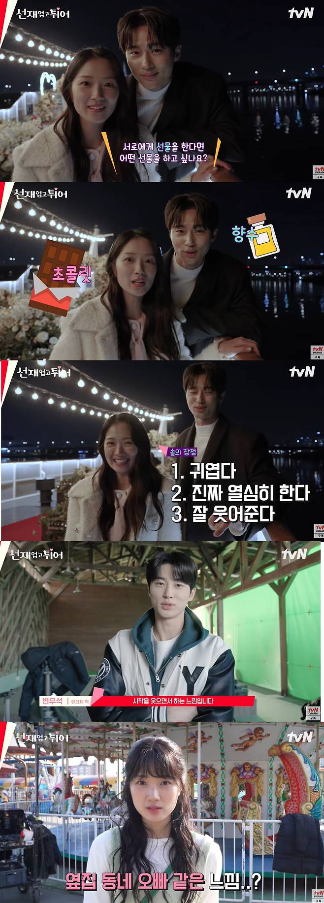 변우석 김혜윤은 "서로에게 선물을 한다면 어떤 선물을 할건지?" 질문에 동시에 "해주고 싶은게 있다"고 말했다. 변우석은 김혜윤에게 향수를, 김혜윤은 변우석에게 초코렛을 선물하고 싶다고 꼽았다.