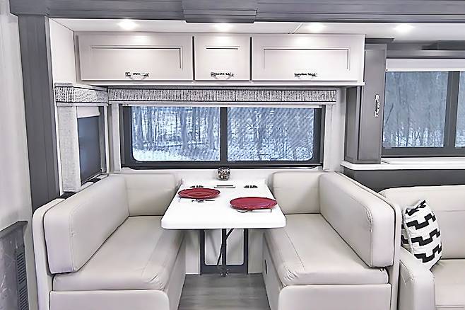 가장 놀라운 점은 이 모델이 욕실을 두 개나 갖추고 있다는 점이다. 화장실이 하나라도 있으면 다행이라는 RV 환경에서 욕실이 두 개라는 지점은 대가족이 여유로운 캠핑을 즐길 수 있도록 보장하는 핵심 요소다. 여기에 실내/외 TV, 중앙난방, 서라운드 사운드 오디오, 심지어 벽난로까지 더해져, 이 차가 정차하는 곳이 바로 가정집이 되는 마법을 부린다.