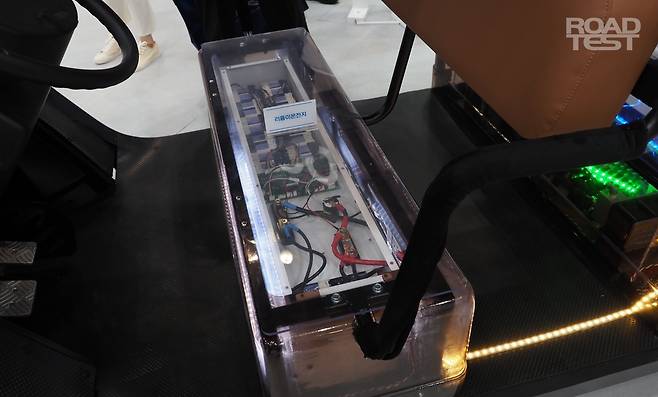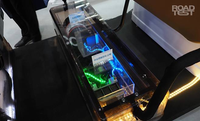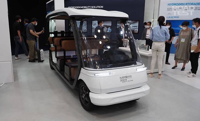 포스코는 하이브리드 카트를 앞세웠다. 1열과 2열 시트 아래에 각각 리튬 이온 배터리와 수소연료 탱크, 수소연료전지 스택을 심었다. 주행 중 배터리가 60% 이하로 떨어지면 수소연료전지가 개입하는 방식으로 움직인다. 전기차의 단점인 짧은 주행거리를 수소로 보완하려는 포스코의 의도를 엿볼 수 있다.