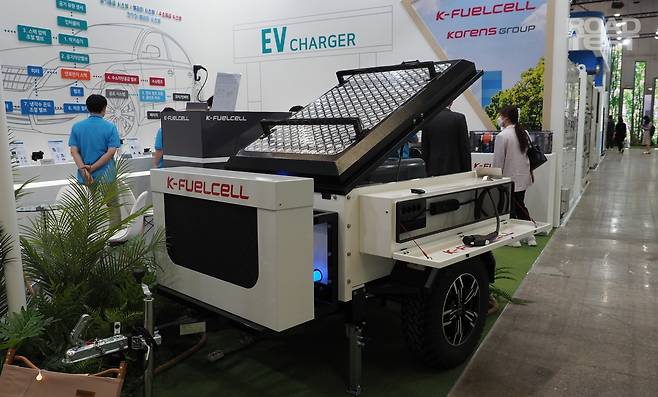 수소연료전지 시스템을 바탕 삼은 이동식 전기차 완속 충전기도 공개했다. 7㎾ 출력으로 전기차 배터리에 전력을 공급한다. 오래된 아파트를 포함한 충전 인프라가 부족한 곳에서 요긴하게 쓸 수 있다. 케이퓨얼셀에 따르면, 이동식 전기차 충전기는 기존 배터리 방식의 이동형 충전기보다 시스템 충전 시간을 크게 줄였다.