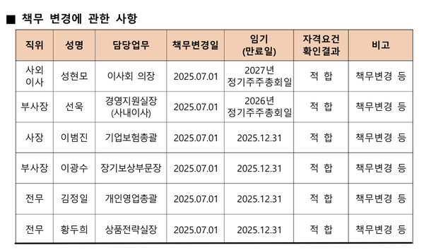 이는 책무구조도 운영의 체감도를 높이려는 조치로 당국이 요구한 공시 기반 책임경영 체계에 부합하는 방향으로 해석된다. 메리츠화재는 앞으로도 이사회 주축을 사외이사로 구성하겠다는 뜻을 강조했다.