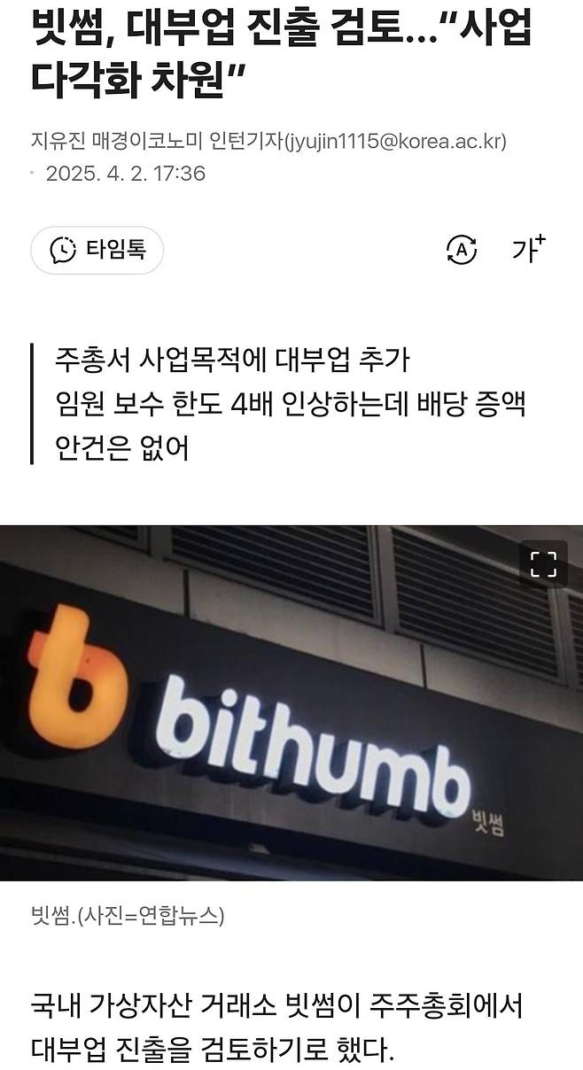 빗썸, 대부업 진출 검토.