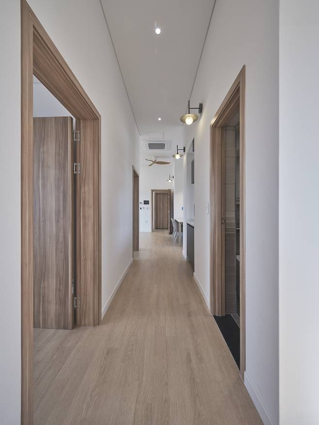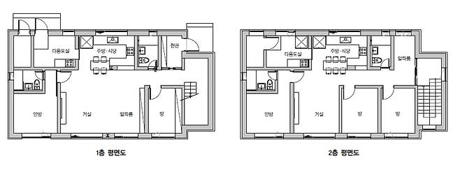 설계는 건축주의 요구 사항을 충분히 반영해 진행됐다. 1층은 건축주의 부모님, 2층은 건축주의 동생 내외가 거주할 예정이었기 때문에 제한된 면적기준 내에서 두 세대가 생활하는데 최대한 불편함이 없도록 공간을 구성했다. 세대 간 프라이버시 보호를 위한 평면 및 동선계획에 초점을 맞췄고 무엇보다 향후 2층 전체 임대를 고려해 별도 분리된 출입 공간을 계획했다.