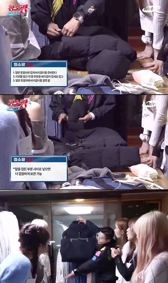 tip. 팔을 접힌 부분 사이로 넣으면 더 깔끔하게 보관할 수 있다.