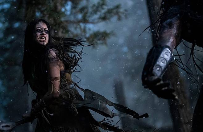 또한 <프레데터> 시리즈의 주인공은 아널드 슈워제네거가 맡았던 근육질 마초 캐릭터를 시작으로 남성 캐릭터를 고수했었는데요. <프레이>에서는 약했던 소녀가 유럽 남성, 외계인까지 혼자서 해결하게 만드는 강인한 성장을 보여줍니다.