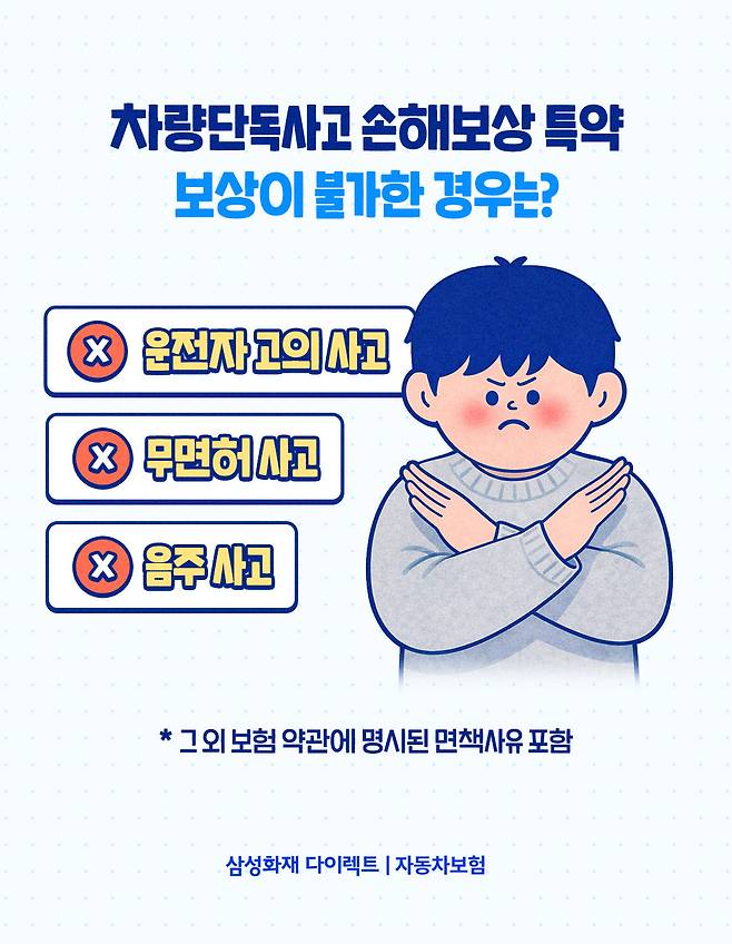 ✔ 음주, 무면허, 고의사고 등의 경우 보상 제외