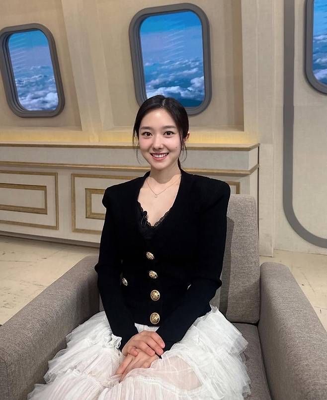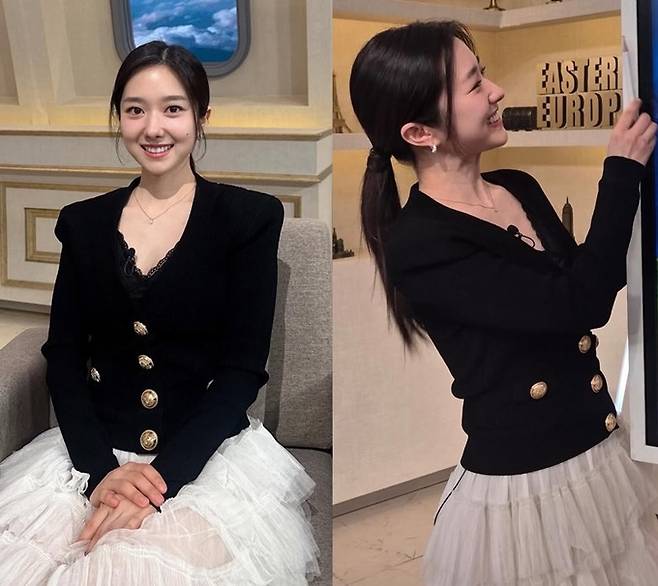 공개한 사진에서 이혜성은 골드 버튼 디테일이 눈에 띄는 고급스러운 블랙 재킷에 화이트 튤 스커트를 매치한 스타일로 여성스러우면서도 로맨틱한 분위기를 자아냈다.