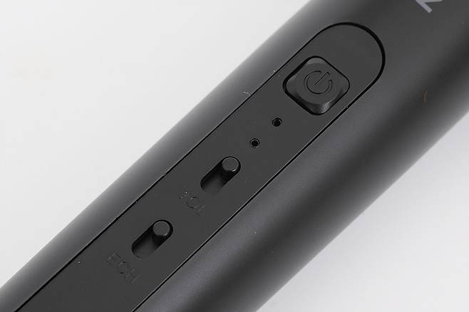 마이크에는 전원 버튼과 두 개의 슬라이딩 스위치가 있는데, 하나는 볼륨 스위치이며 다른 하나는 에코 스위치이다. 슬라이딩 타입으로 되어 있어서 정교한 컨트롤이 가능하다. 또한 전원 버튼과 볼륨 스위치 사이에는 두 개의 LED 표시등이 있는데, 전원 표시등과 충전 표시등이다.