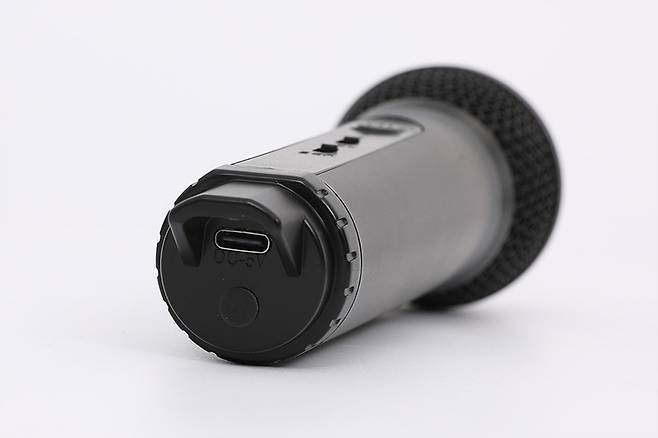 마이크 아래쪽에는 USB C타입 포트가 있어서 마이크에 내장된 배터리를 충전할 때 사용된다.